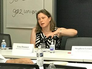Stephen Lerner, Lisa Donner, and Joseph McCartin all highlighted how the campaign to organize bank workers is a quintessential example of unions responding with offensive action in the wake of the Janus decision and Bargaining for the Common Good. Instead of going on the defensive, unions can tackle seemingly impossible targets like Wells Fargo and other financial giants to earn just working conditions for their employees and protect community members from predatory financial practices. All three speakers emphasized how organized bank workers can fight for working conditions and compensation systems that don’t force them to enact predatory sales practices against consumers, thereby reducing the burden large financial institutions can place on working communities.