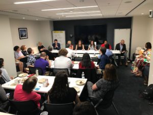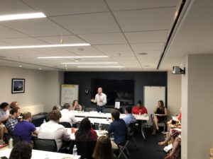 On Thursday, July 19, the AFL-CIO, Friedrich Ebert Stiftung, the CWA, Rutgers’ Center for Innovation in Worker Organization, and Georgetown’s Kalmanovitz Initiative for Labor and the Working Poor hosted a discussion on the importance of organizing bank workers. The event featured introductory remarks from Kalmanovitz Initiative Director Joseph McCartin and Sara Burke from the Friedrich Ebert Foundation, followed by an overview of Bargaining for the Common Good presented by Kalmanovitz Initiative fellow Stephen Lerner and Lisa Donner from Americans for Financial Reform and a panel discussion featuring organizers, bank employees, and union staff members who have been deeply engaged in this work.