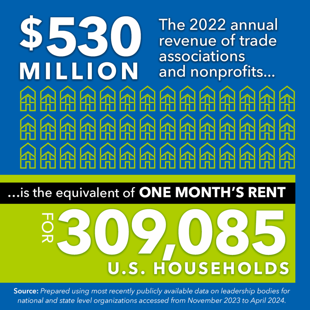 • Between 2020 and 2022, these trade associations had a total of two and a half billion dollars in revenue