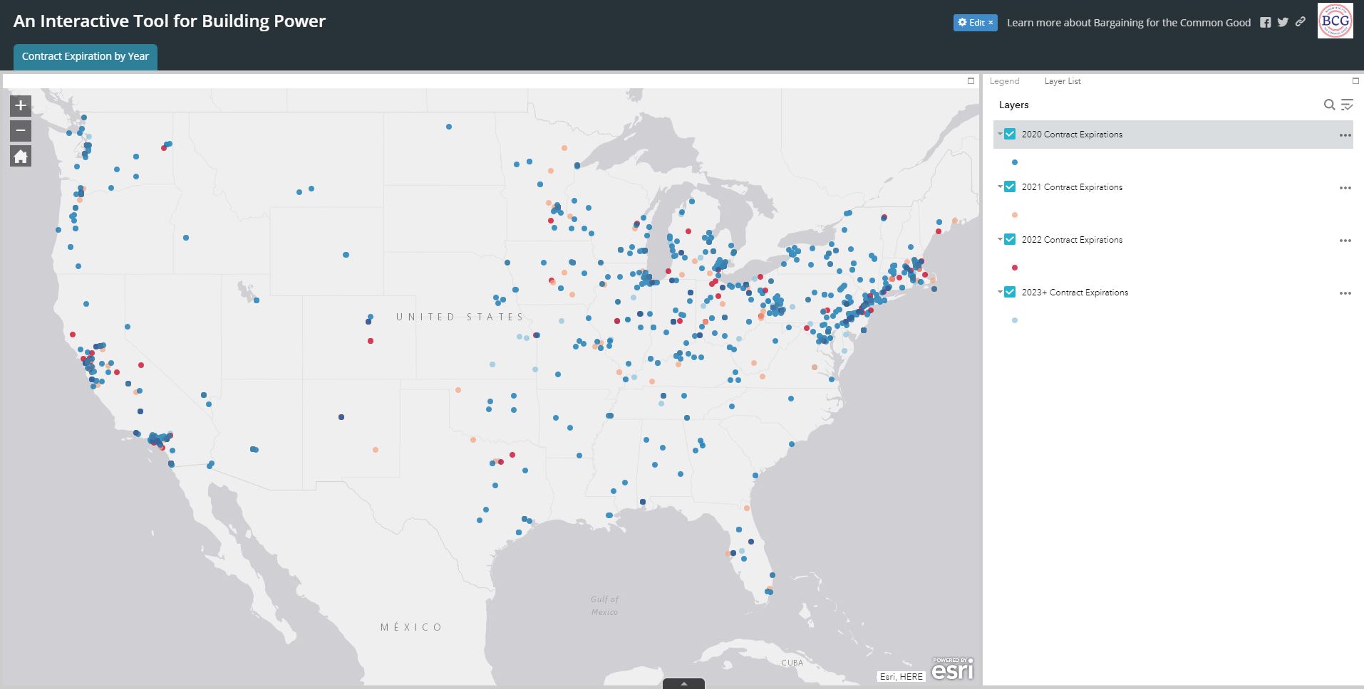 We propose a simple idea: let’s use the natural alignment of contract expirations and reopeners around the country to make common good demands in every sector of the economy and geography of the country. With this in mind, the Bargaining for the Common Good (BCG) network has undertaken a new project to support and connect activists nationwide. We are officially launching an ambitious effort to collect and map as many union contract expirations as we can across the United States. We plan to overlay this data with community and worker organizing campaigns and budget cycle information to create a powerful tool for our collective work.