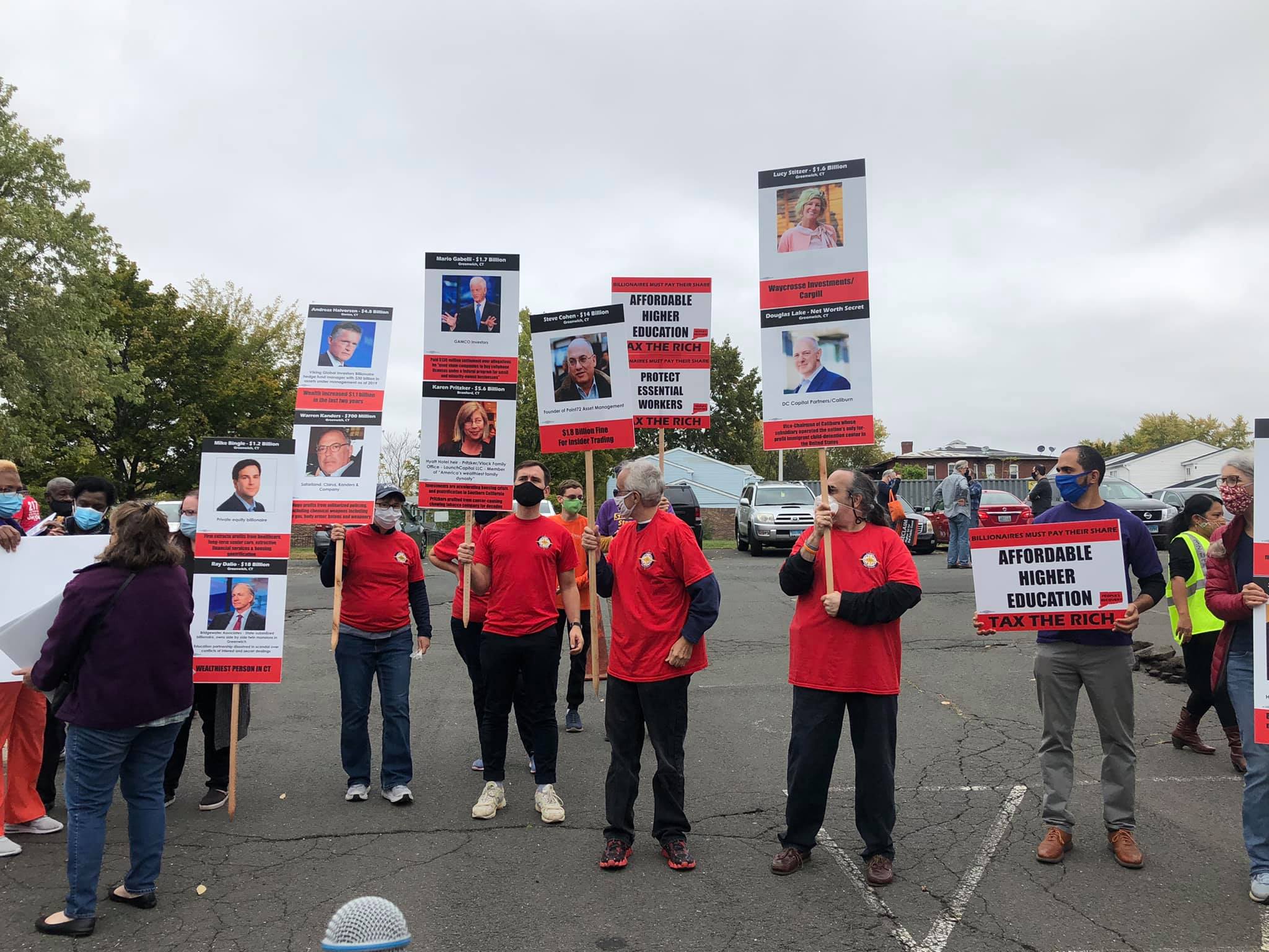 You can read more about the October 20 action in the Hartford Courant. The Connecticut People’s Coalition includes SEIU State Council, SEIU 1199, CT Citizen Action Group, Connecticut State Employees Association (CSEA), the Congress of CT Community Colleges (4Cs), Connecticut Employees Union Independent (CEUI), Connecticut State University American Association of University Professors (CSU-AAUP), Naugatuck Valley Project, UAW Region 9A, SEIU 32BJ, New Britain Racial Justice Coalition, CT Working Families and others.