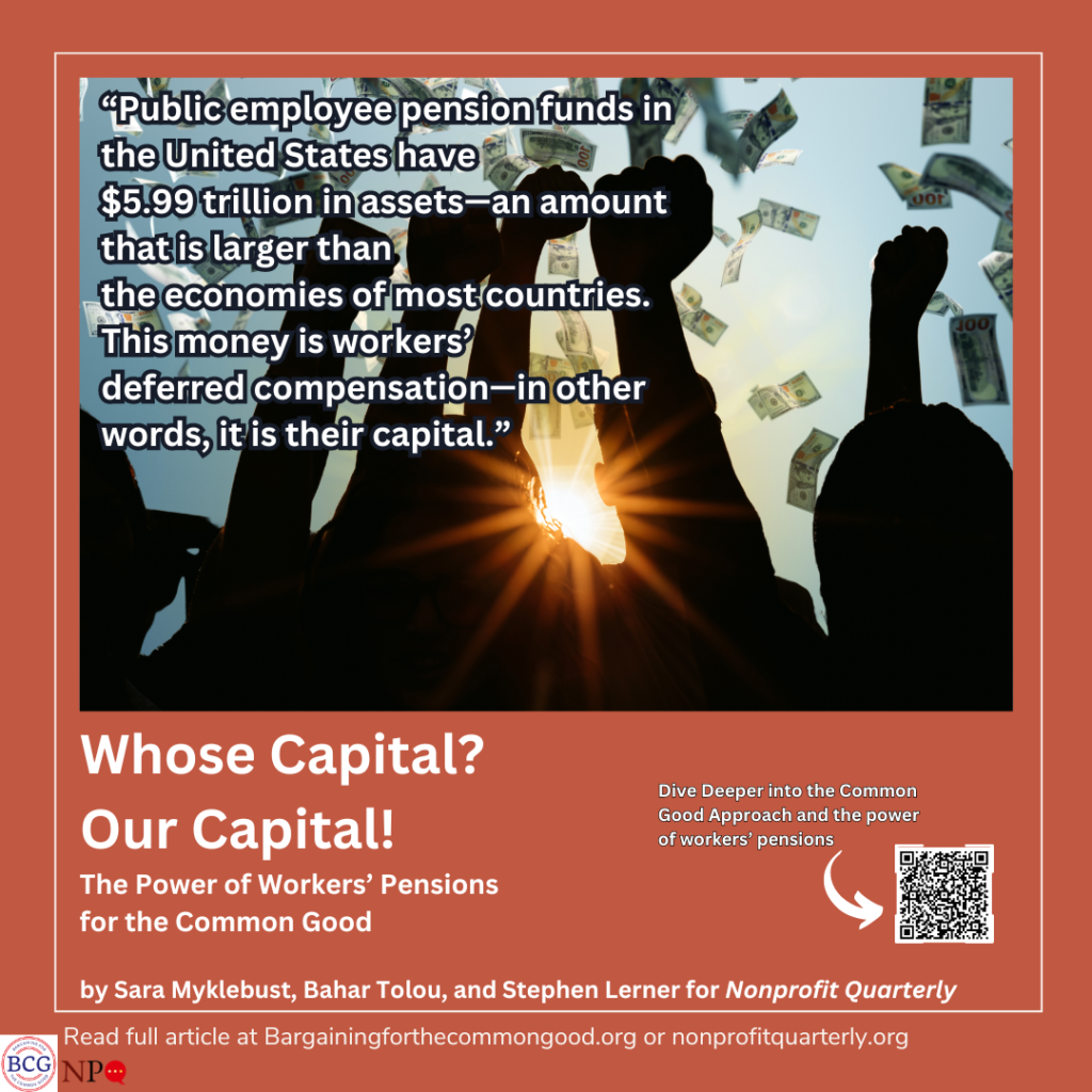 Workers’ pension funds, like so many aspects of our society, have become captives of Wall Street. Pension funds were created through struggle by workers, but the financial sector has figured out a way to exercise outsized control of those funds to serve their interests. This is the reality today—but workers and communities have an opportunity to align around their shared interest in thriving communities and to steer where their money goes: affordable healthcare, housing, and education; just and sustainable environmental policies; and so much more. Read more at the Nonprofit Quarterly